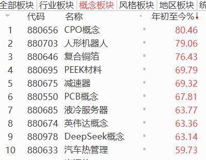 从板块来看,这种结构性特征更为明显。从行情排名来看,涨幅前十的分别为通信、通用机械、元器件、有色、半导体、互联网等科技板块。从概念排名来看,涨幅前十的分别为CPO、人形机器人、复合铜箔、PEEK材料、减速器、PCB、液冷服务器、英伟达、DS等,同样是新科技表现抢眼。