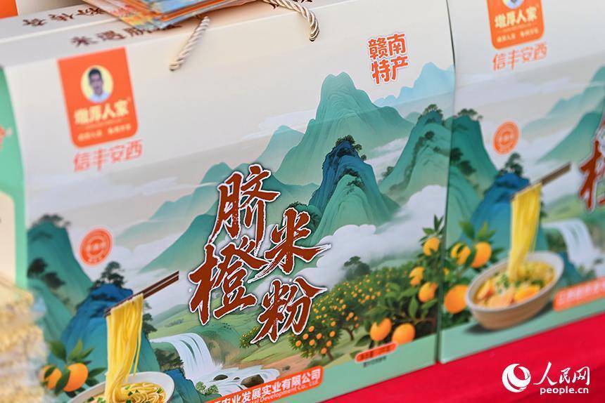 采购商和游客前来洽谈脐橙订单,品尝脐橙特色美食。人民网 朱海鹏摄人民网信丰11月2日电 (朱海鹏)11月1日,在赣南·信丰脐橙2025年开采仪式暨产销对接大会现场,琳琅满目的赣南脐橙和脐橙元素农特产品,吸引众多采购商和游客前来洽谈品尝。