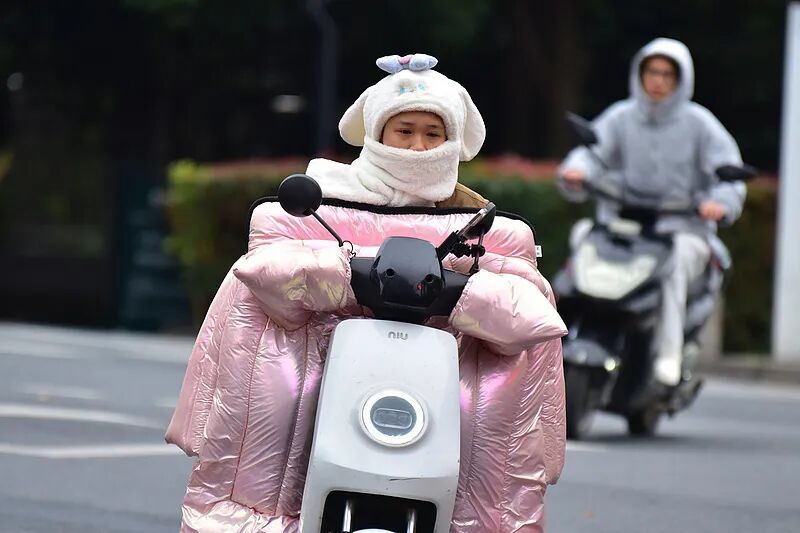 10月20日,安徽阜阳市民在寒冷天气中出行